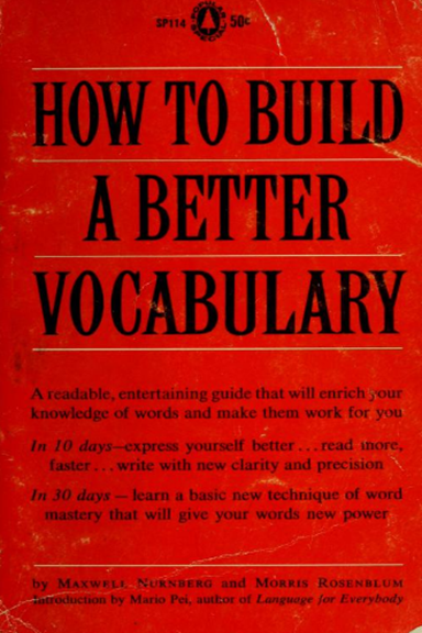 "Are there memory aids, or better yet, systems, whereby one may familiarize himself with entire sets of words at once, break them up into their component parts, analyze and penetrate their meaning even when they have never been seen before? The authors are convinced (and we join them in their conviction) that there are such devices. We can call them short cuts to understanding, or aids to building a wider personal vocabulary. . . . The authors, men of long experience in this field, have selected and gathered together in this volume a number of such short cuts and aids Highly rewarding." Publisher : New York : Popular Library Publication date : 1961 Language : English Paperback : 346 pages Link download https://nitro.download/view/E668464C9C0B3F3https://nitroflare.com/folder/949760/L00VuZ2xpc2g=